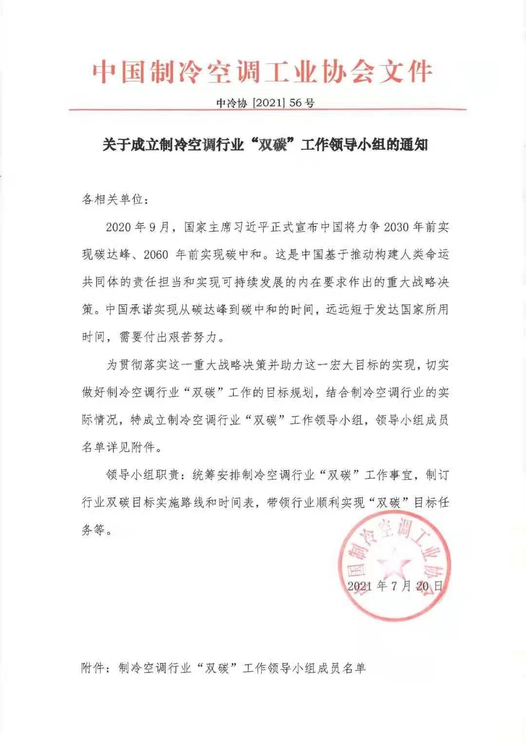 7月20日,中(zhong)國(guo)制(zhi)冷空調工業協會宣布成(cheng)立制(zhi)冷空調行業“雙碳”工作領導(dao)小組(zu)。作為國(guo)際節能環(huan)(huan)保(bao)協會評選的(de)“世界環(huan)(huan)保(bao)與新能源(yuan)產業中(zhong)國(guo)余(yu)熱回(hui)收領域領軍企業”,希(xi)望(wang)深藍(lan)空調制(zhi)造有限公司眾(zhong)望(wang)所歸加入了領導(dao)小組(zu)。希(xi)望(wang)深藍(lan)將認真(zhen)履(lv)行領導(dao)小組(zu)職責(ze),為“雙碳”戰略(lve)做出新的(de)更大貢獻。