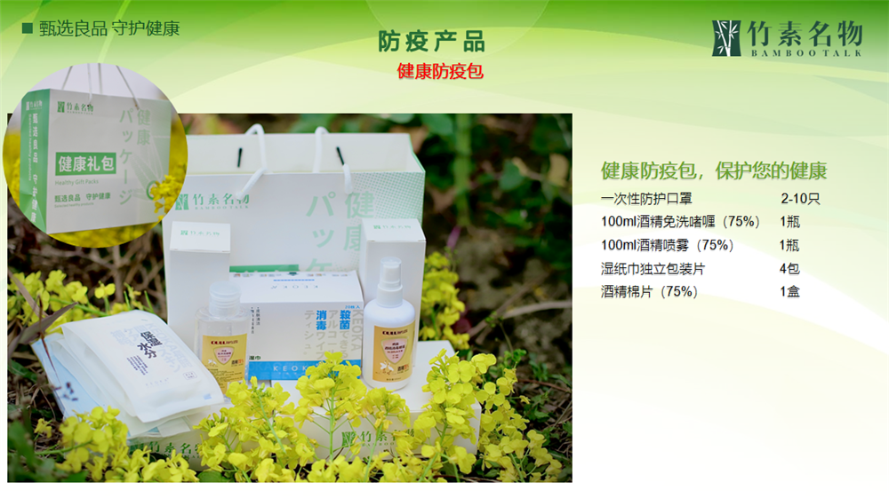 “抗疫用品(pin)”系列(lie)——竹素名物(wu)竹纖維(wei)系列(lie),是根據(ju)竹原(yuan)纖維(wei)的天然抗菌、抑菌特(te)性,推出的家居(ju)抗菌殺毒、個(ge)人洗護(hu)(hu)(hu)、日(ri)(ri)常(chang)護(hu)(hu)(hu)理(li)用品(pin),為居(ju)家抗菌殺毒、個(ge)人洗護(hu)(hu)(hu)、日(ri)(ri)常(chang)護(hu)(hu)(hu)理(li)提供必要(yao)的防護(hu)(hu)(hu)保障。